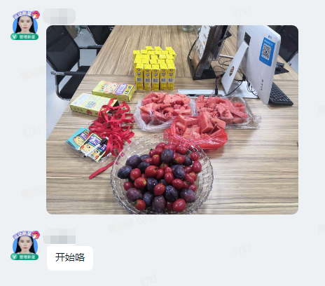 業(yè)務(wù)員們專心致志的工作著,好像誰都沒注意到來回走動的人事小姐姐,直到公司群里的那張照片和那句:開始咯!