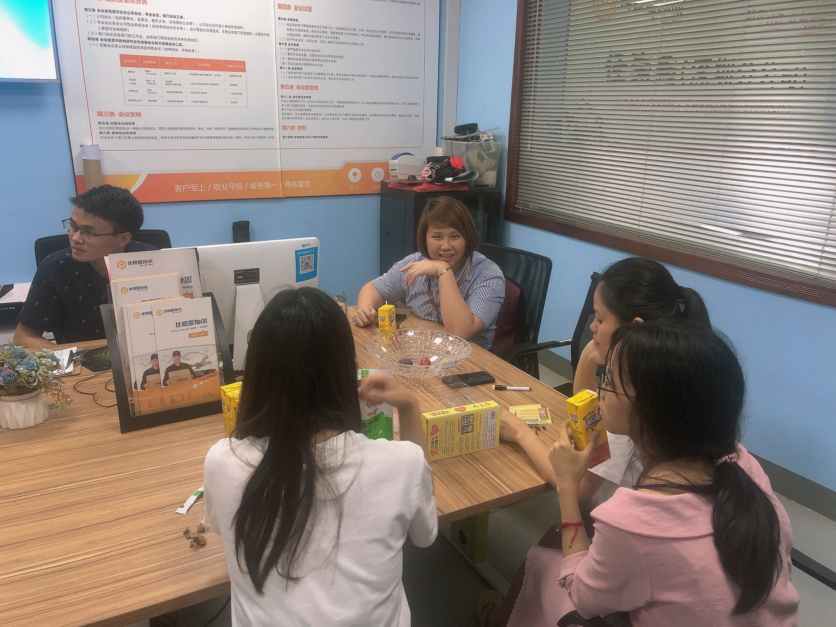 處理好手中的工作,漸漸匯聚在會議室里,對桌上的水果進行輸出。